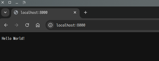 打开浏览器,访问 http://localhost:8000,经典的 Hello World! 就出现了!
